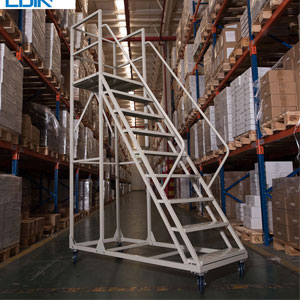 概述:登高車是倉儲物流經常使用的一種登高作業設備,類似于登高扶梯的作用。可方便人員站在車平臺上實現存取貨物等作業,提高工作效率。